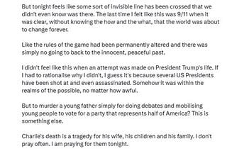 I liked Charlie Kirk because he struck me as someone who was logical and cared about America.