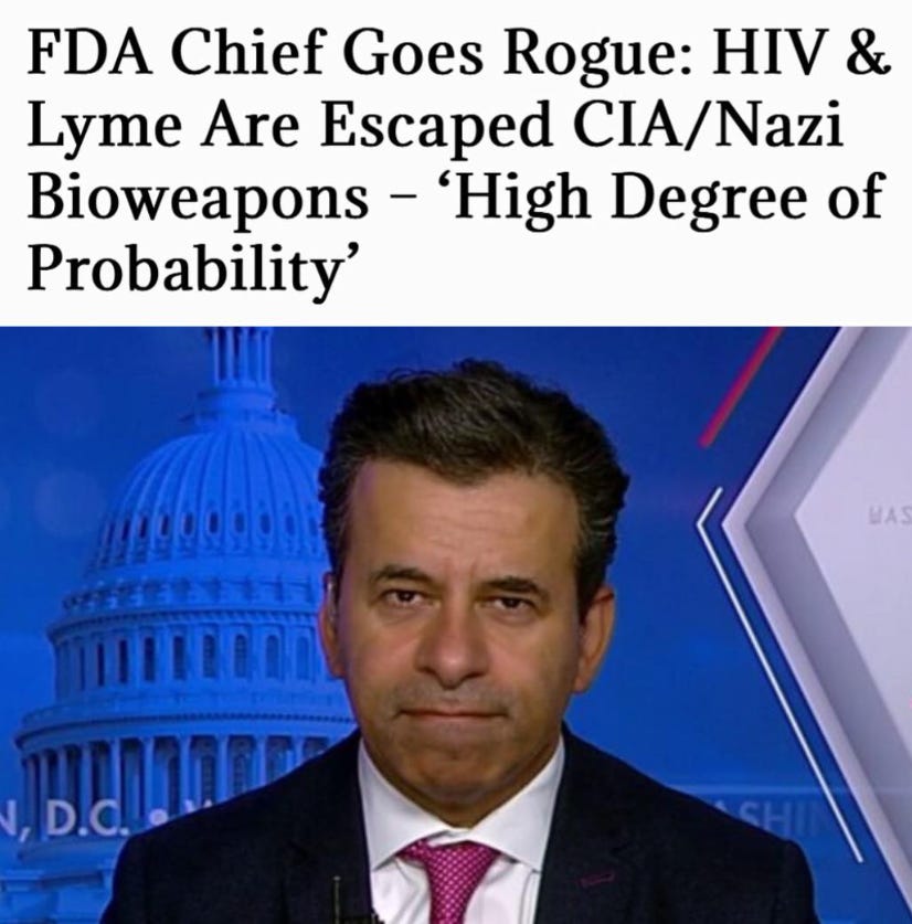 Many posts on Facebook add that new “FDA Commissioner Dr. Marty Makary has presented compelling evidence challenging the long-held official origins of both HIV/AIDS and Lyme disease in a detailed interview linked to the new documentary Thank You, Dr. Fauci.