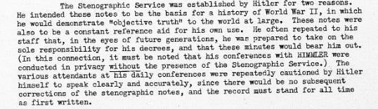 Orr continues: “The only Reich Chancellery officials in American hands before June, in Bavaria, who had been with Hitler, but were not there on the date of Hitler’s supposed suicide, were the legal secretaries (men) on Hitler’s personal staff at the Reich Chancellery who served as a shorthand experts and stenographers: Gerhard Herrgesell, Ludwig Krieger, Heinz Buchholl, Karl Thoet, Dr. Kurt Peschel, Dr. Ewald Reynitz, and Hans Helling. They were in American custody before May 15, 1945, in Berchtesgaden. Herrgesell was the spokesman of these officials… Herrgesell was employed by US Army CIC in Berchtesgaden as a translator and stenographer for the interrogations of Hitler’s chauffeur (also found/captured in Berchtesgaden). Herrgesell was even trusted to question Kempka alone, without supervision.