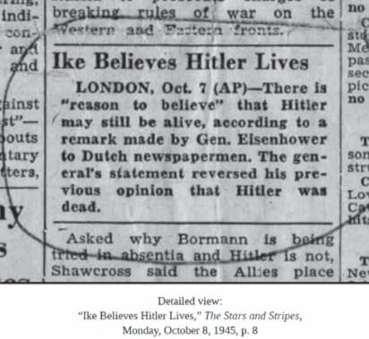 The official cover-up of Hitler’s escape and survival did begin much earlier, in secret negotiations involving future CIA chief Allen Dulles. But the official narrative to officially deceive the public began on November 1, 1945 - with the presentation of Hugh Trevor-Roper’s cherry-picked testimonials and “facts” supporting the pre-determined conclusion that Hitler was dead.